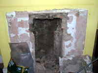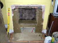 Fireplace enlarged to the builders opening, rubble cleared and lintel